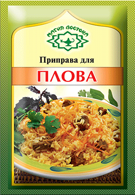 The seasoning used for cooking pilaf and rice dishes. Recommended dosage: 2-3 tablespoons of seasonings for 2-3 kg of finished product.