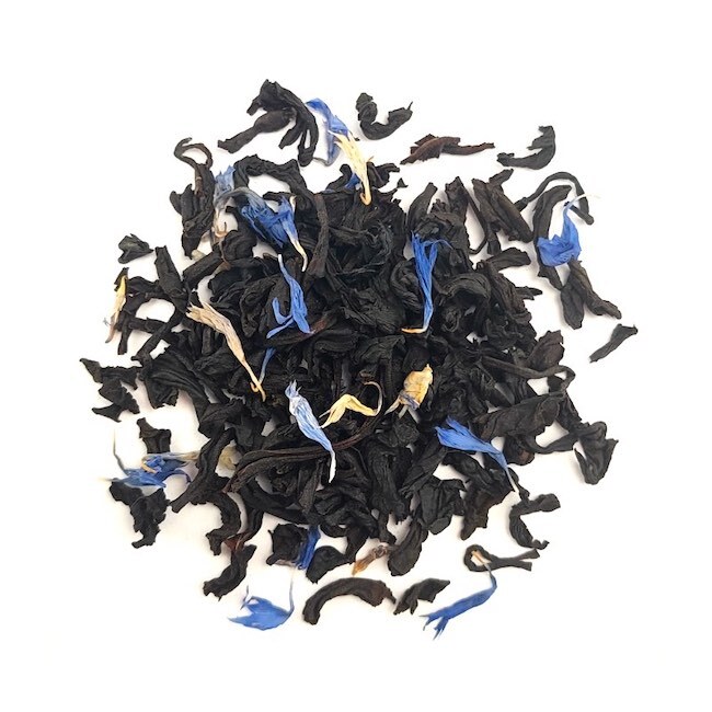 Ingredients: black loose-leaf Ceylon Orange Pekoe tea (96%), cornflower petals (0.5%) and cotton candy flavor (3.5%).