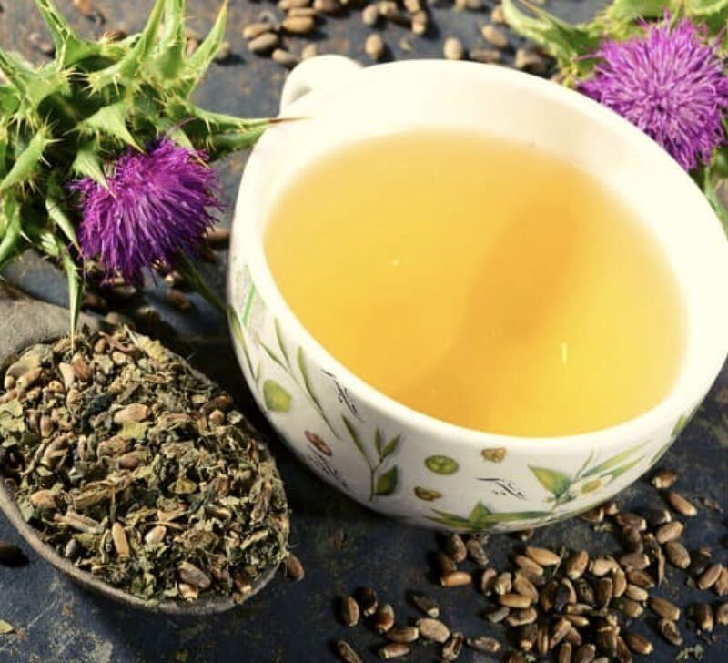 Milk thistle tea is made from an herb with milky, white-veined leaves.