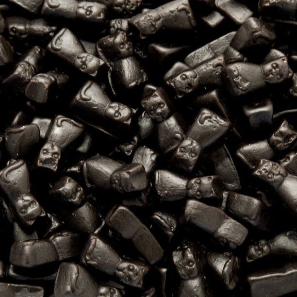 Ingredients: Sugar, gelatin (sulfite), glucose syrup, licorice root extract, caramelized sugar, vegetable oils (coconut, palm), anise oil, glazing agent (beeswax), wheat flour.