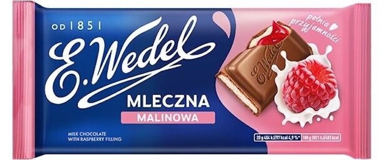 Milk chocolate with raspberry filling owes its unique taste to the combination of two layers - velvety milk and intense raspberry, covered with original Wedel chocolate.
