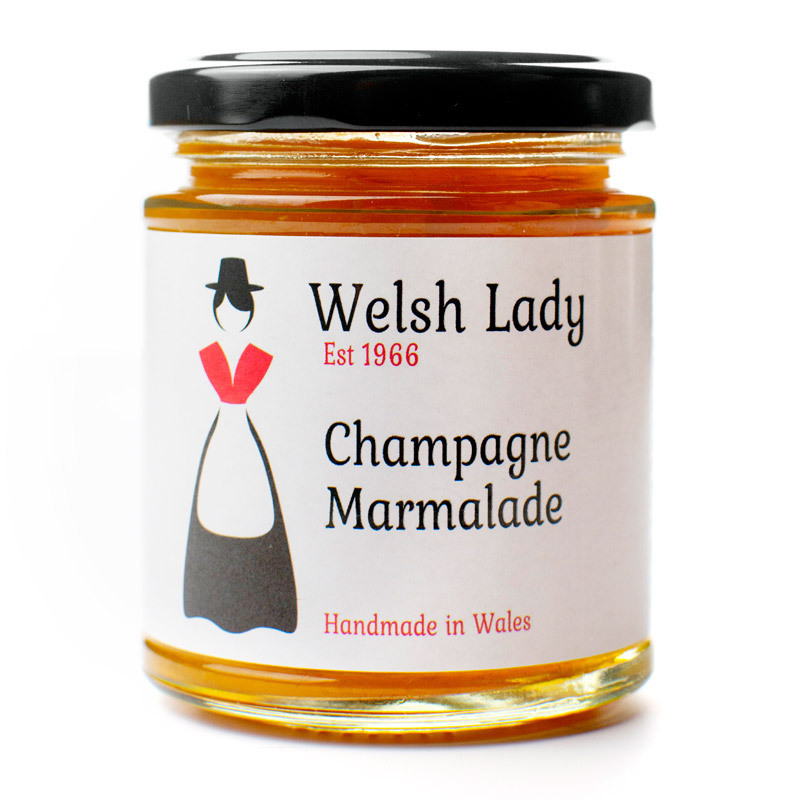A delightfully sweet tangerine marmalade with luxurious Champagne, good enough  for a Great Taste Award too!
