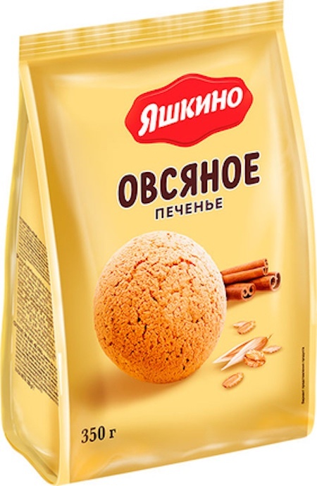 Ingredients: Wheat flour 1/s (contains gluten), sugar, confectionery fat (refined deodorized vegetable oils in natural and modified form, including soybean, emulsifiers: mono- and diglycerides of fatty acids, soy lecithin, flavoring, coloring: beta-carotene , antioxidants: ascorbic acid, alpha-tocopherol), oat flour, salt, raising agents: sodium bicarbonate, ammonium carbonates (ammonium carbonate, ammonium bicarbonate), ground cinnamon, flavoring: vanillin, acidity regulator: citric acid.